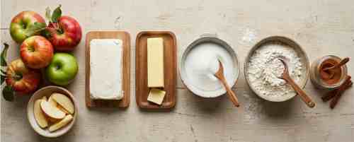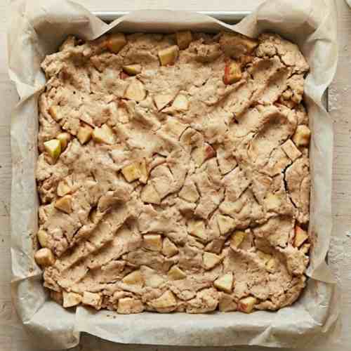 - In a bowl, combine flour, brown sugar, and cinnamon for the topping. Add cold butter and mix until crumbly. Sprinkle over the apple layer.