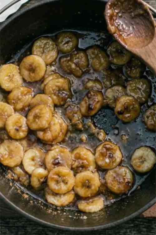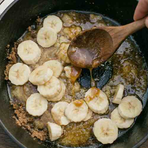 During cooking, the butter and sugar will melt together to form a caramel sauce. The bananas will soften and absorb the flavor.