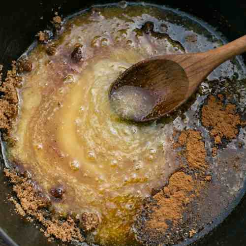 Add cinnamon and a small pinch of salt. The salt helps balance the sweetness and makes the caramel flavor stronger.