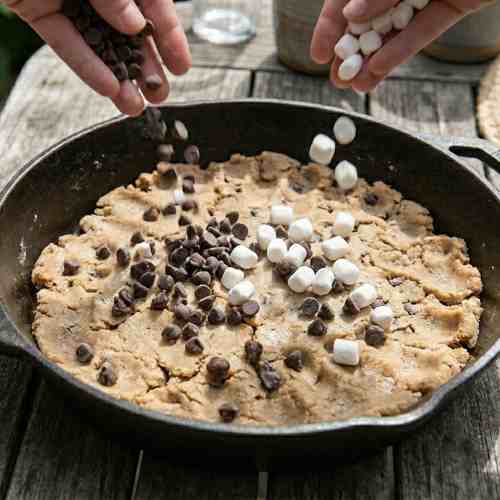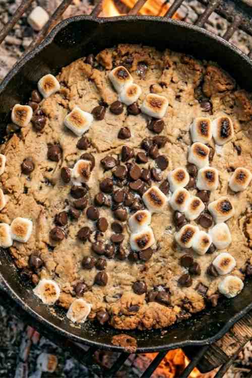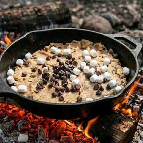 Easy Campfire Cookies with Chocolate Chip Cookie Dough – Gooey Skillet Dessert Recipe