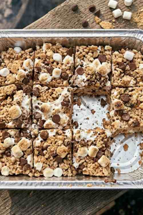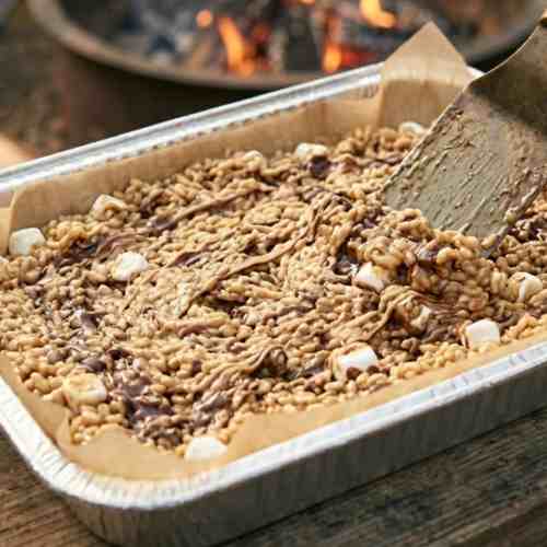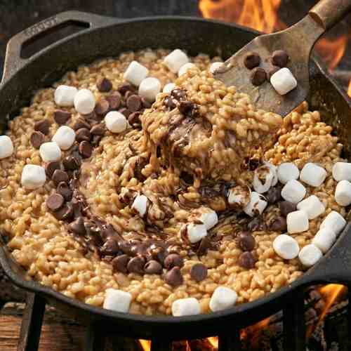 This recipe brings together the classic crispy treat with a warm campfire twist. With chocolate, marshmallows, and graham crackers, every bite tastes like a cozy treat made by the fire.