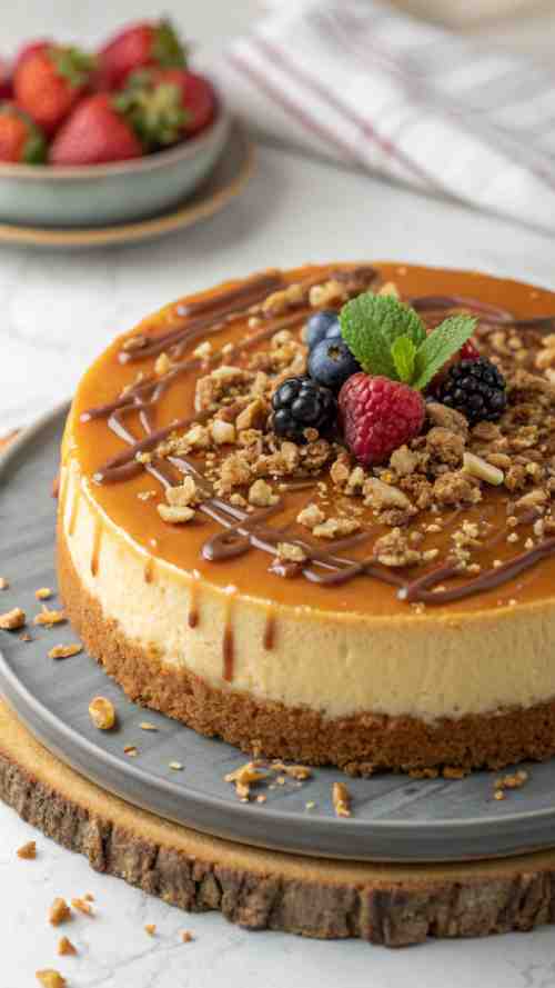 I love that it feels romantic without needing a million steps. It is rich, creamy, and the caramel on top makes it feel like we really tried, even if we made it in old pajamas with cartoons still paused on the TV. We sit down, take a bite, and suddenly we are not just parents trying to survive bedtime, we are two people who still get to enjoy something together. It is small, sweet, and honestly just our little secret treat. Perfect for the nights when love looks like dessert and peace for five whole minutes.