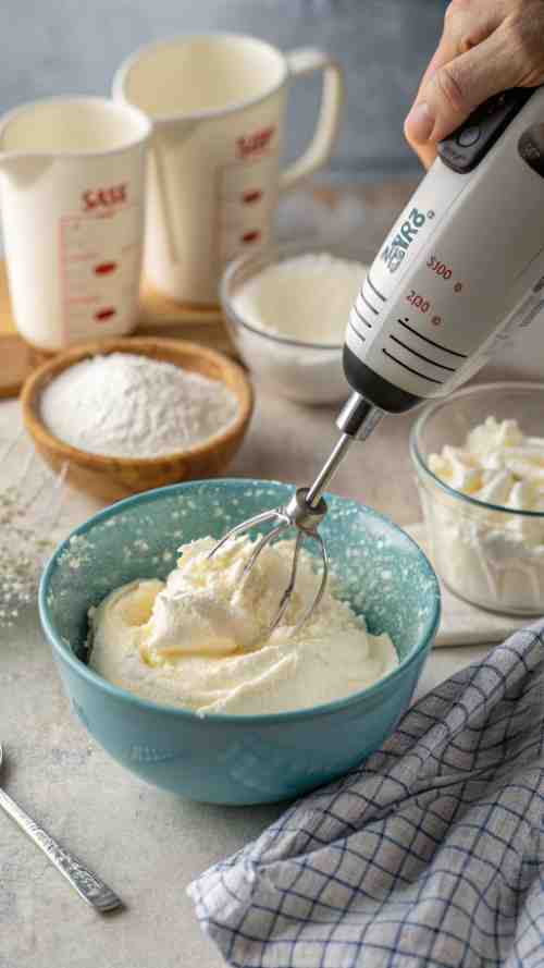 - Beat the cream cheese until smooth and creamy. Add sugar and vanilla, mixing until combined. Add eggs one at a time, mixing well after each addition. Stir in sour cream until smooth.
