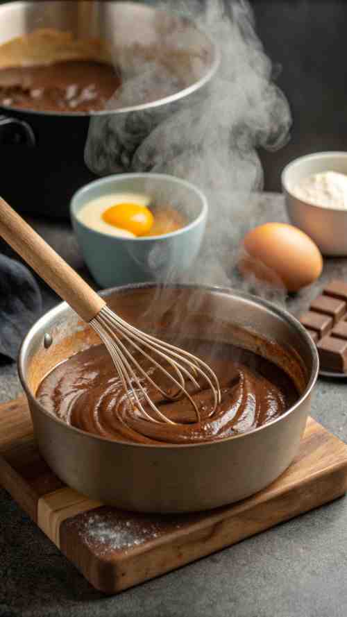 - In a separate bowl, lightly beat the egg yolks. Now, here’s the tricky part—slowly pour about ½ cup of the warm milk mixture into the eggs while whisking like crazy. This keeps the eggs from scrambling (trust me, nobody wants chocolate scrambled eggs).