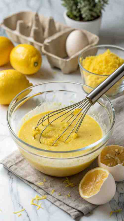 - Add in lemon juice and zest, whisking until combined.
