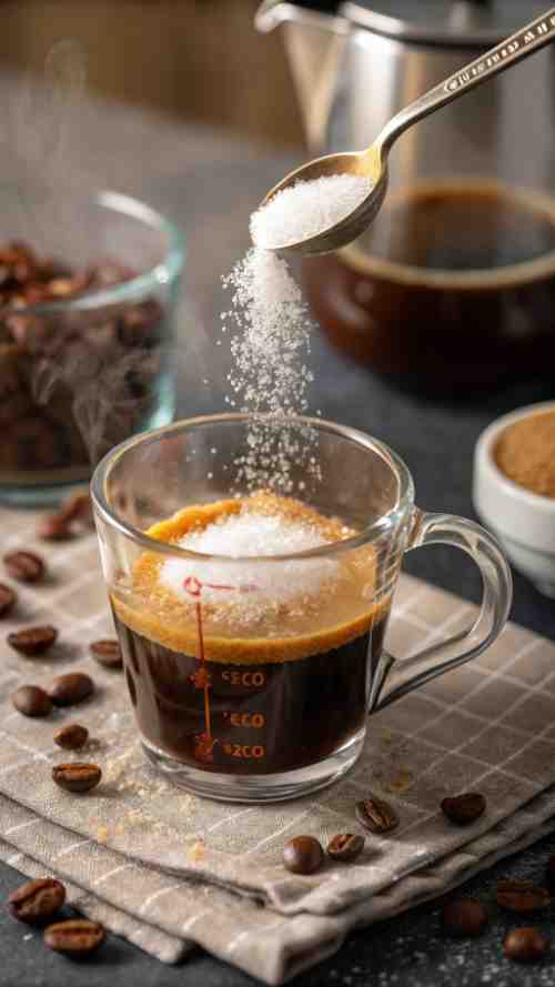 - In a small bowl, stir the sugar into the cooled espresso until fully dissolved.