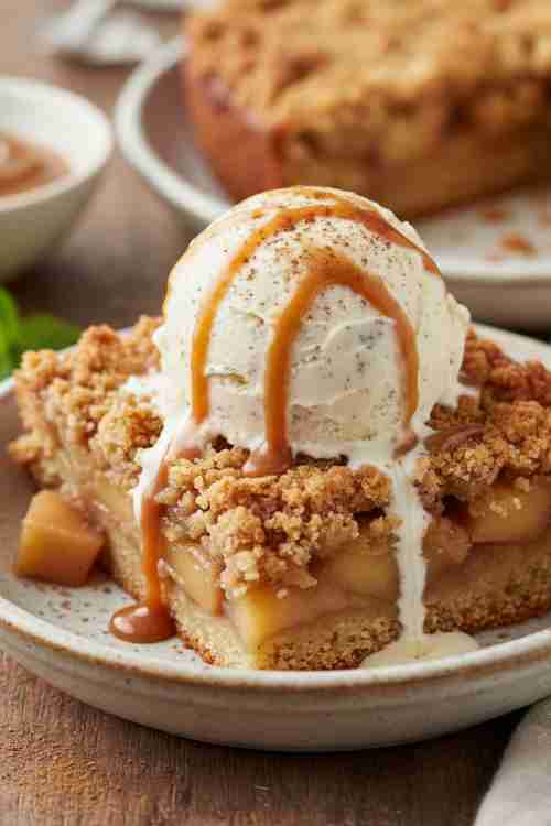 - Bake for 45–50 minutes until the top is golden and apples are bubbly.