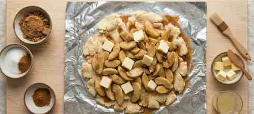- Add small cubes of butter evenly over the apple filling.