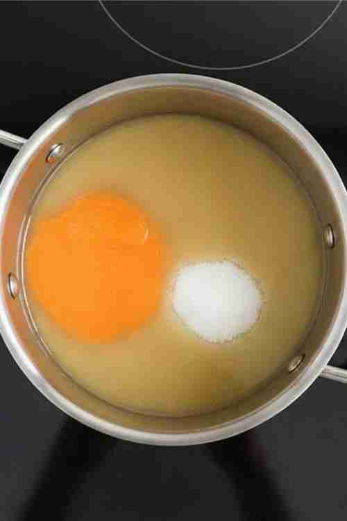 In a small saucepan, add the egg yolks, lemon juice, zest and sugar
