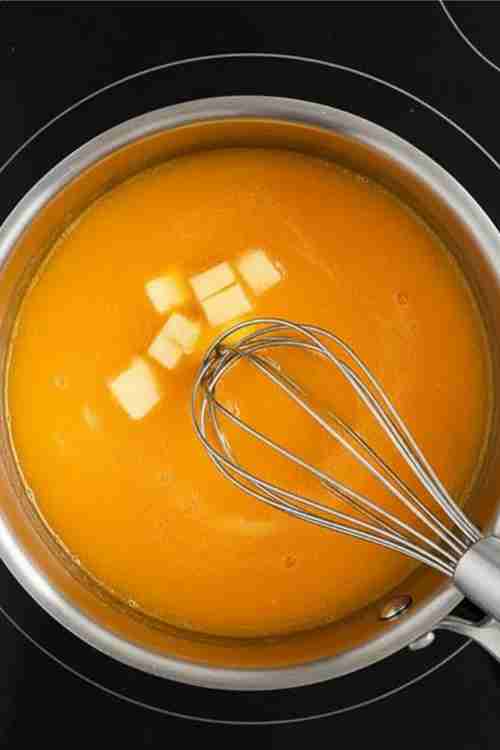 Remove from heat and stir in the butter until smooth and glossy.