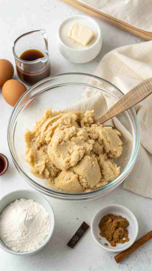 - Mix in vanilla extract, then slowly add flour and salt until dough forms.