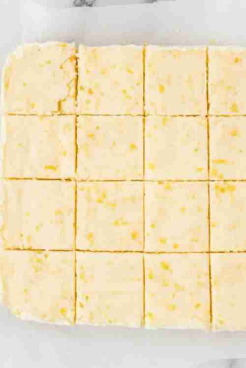 Line an 8×8-inch pan with parchment paper. Trust me, this makes life easier later. Pour your lemony fudge mixture into the pan and spread it out evenly. Now comes the hardest part—waiting. Stick it in the fridge for at least 2-3 hours, or until it’s nice and firm.