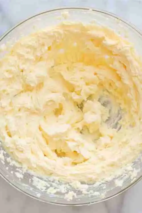 In a large bowl, beat the softened butter and sugar together until it’s light and fluffy. This takes about 2-3 minutes with an electric mixer.