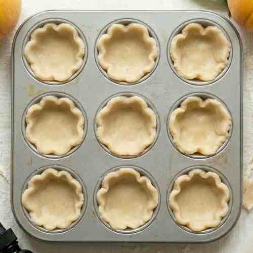 Lightly flour a clean work surface and roll out the pie dough to an even thickness. The dough should not be too thin, as it needs to hold the filling. Use a round cutter or a glass to cut out circles slightly larger than the muffin tin openings.