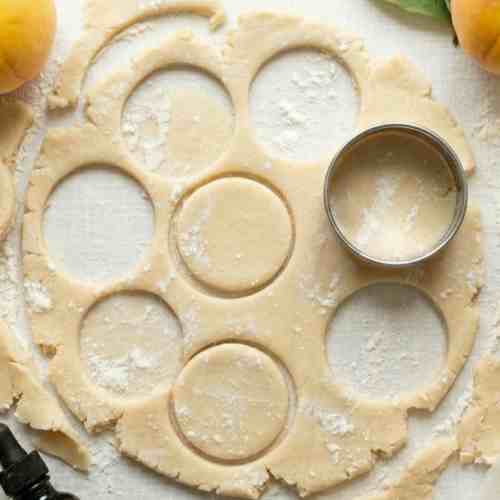 - Roll out the pie dough on a floured surface and cut into evenly sized circles.