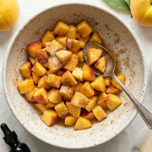 - Cut peaches into small, even pieces for uniform cooking