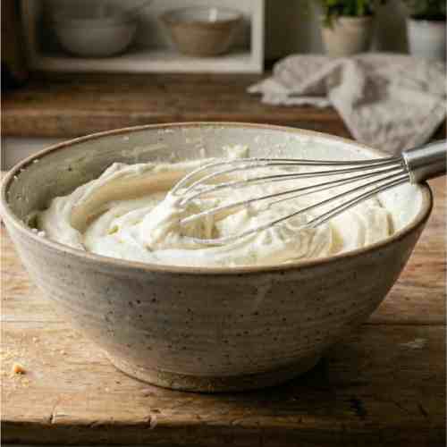 - Add mascarpone cheese and vanilla extract to the whipped cream. Mix gently until fully combined and smooth. Do not overmix to avoid thick or grainy texture.