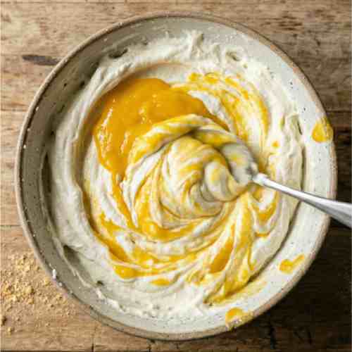 - Add mango puree to the cream mixture. Fold it in slowly using a spatula. Mix until the cream is smooth, light, and evenly colored. Taste and adjust sweetness if needed.