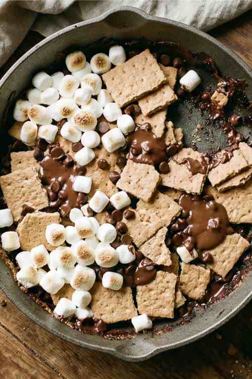 Choose a cast iron pan for even heating or use a disposable aluminum pan for easy clean up. Lightly grease the surface with butter if needed. This helps prevent the melted chocolate and marshmallows from sticking to the pan. Make sure the pan is dry and clean before adding ingredients.