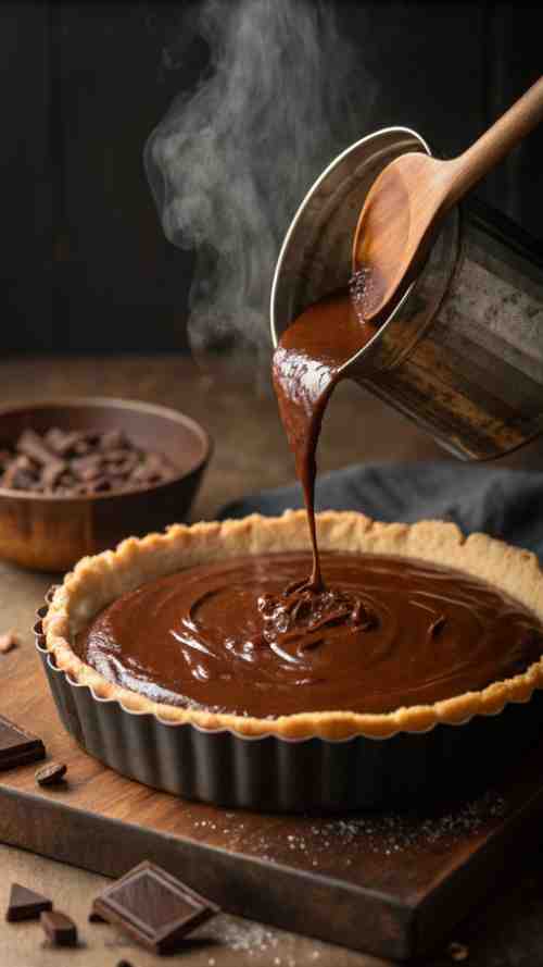 I recommend semi-sweet or dark chocolate for a rich, balanced flavor. Milk chocolate works too, but it’ll make the pie a little sweeter. If you want extra fancy, mix in some bittersweet chocolate.