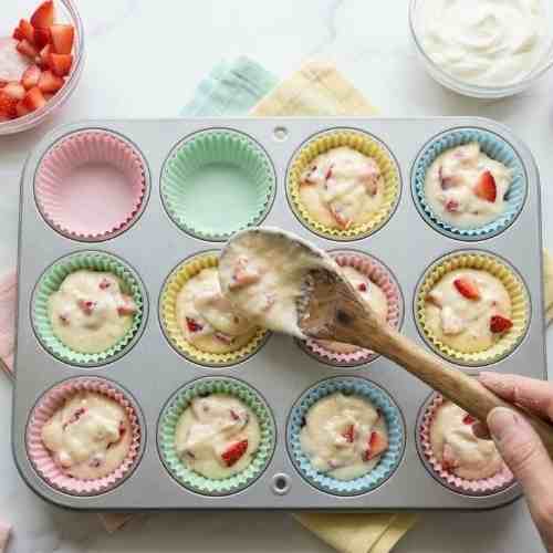 If the strawberries release a lot of juice, gently blot them with a paper towel. Too much juice can make the cupcakes dense.