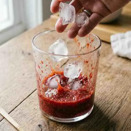 - Add ice cubes on top of the strawberry layer.