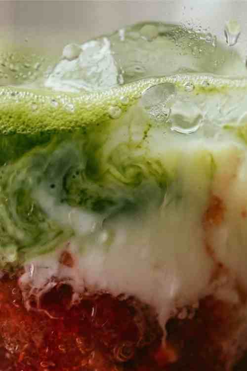 - Gently pour the matcha over the milk to form a top layer.
