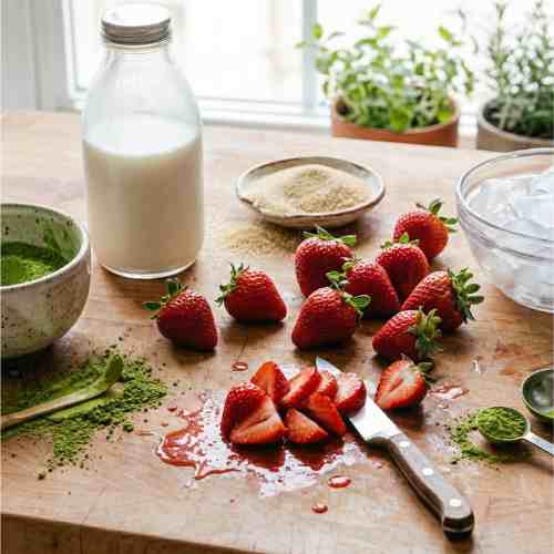Ingredients for Strawberry Matcha Latte