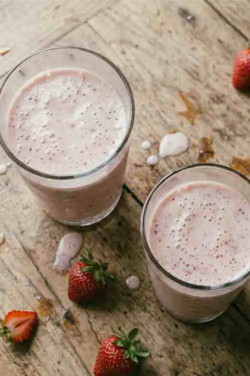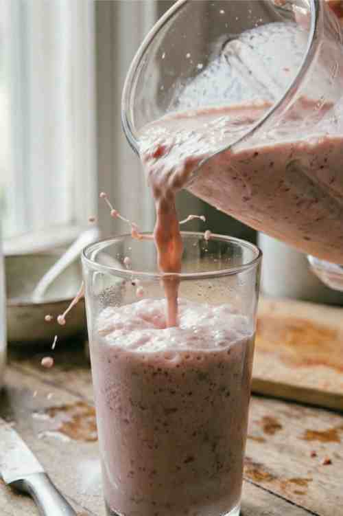 Pour the homemade strawberry milkshake into tall glasses. Serve right away while it is cold and fresh for the best taste.