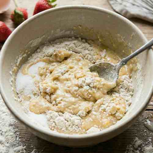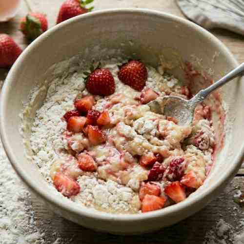 - Toss strawberries in a little flour before adding to avoid sinking