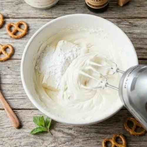 - Press the pretzel crust firmly to prevent crumbling.