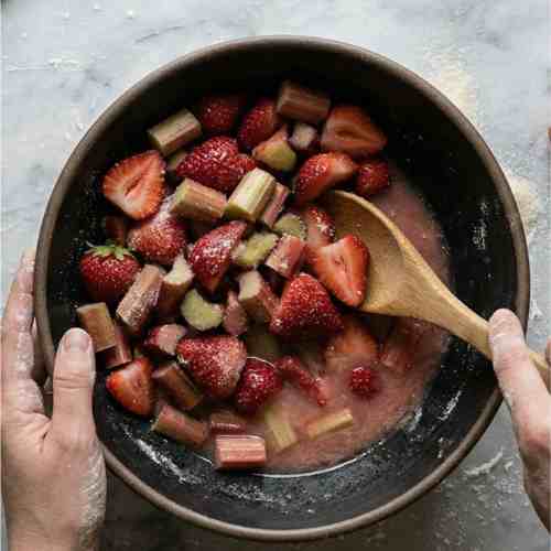 - Fresh strawberries and rhubarb give the best texture and flavor