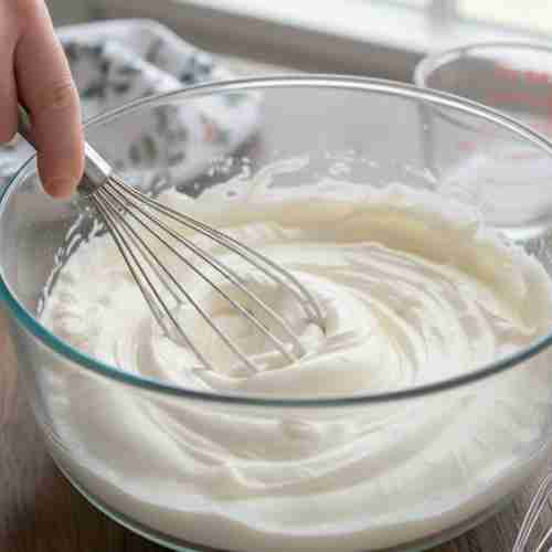 - In a chilled bowl, whip the cream and vanilla extract until soft peaks form.