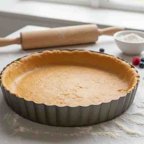 - Prick the bottom with a fork and bake for 10-12 minutes until golden brown. Let it cool completely.