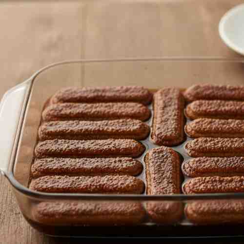 - Mix brewed coffee in a shallow bowl. Dip ladyfingers briefly into the mixture.