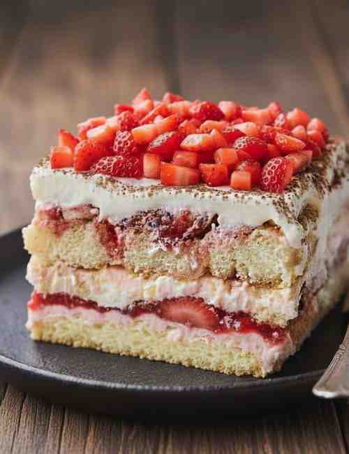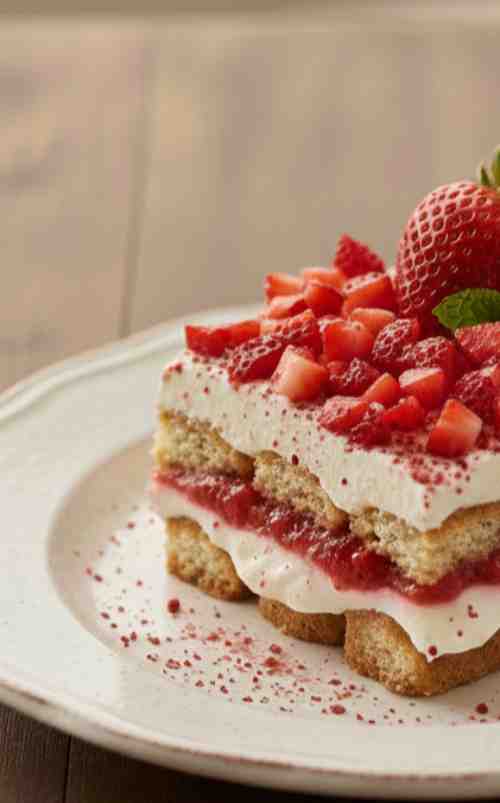 Strawberry Tiramisu offers a brilliant and refreshing alternative to its coffee-laced cousin. With its light, creamy mascarpone layers, spongy ladyfingers soaked in sweet strawberry essence, and a beautiful topping of fresh, vibrant berries, it delivers all the elegance of traditional tiramisu without the heaviness.