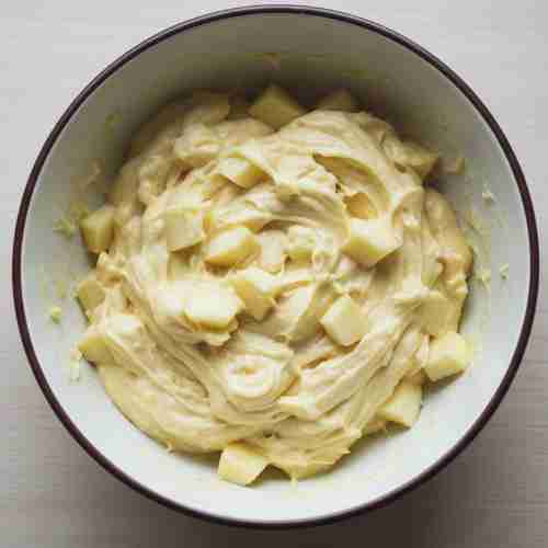 - Gradually fold dry ingredients into wet mixture. Gently fold in chopped apples.