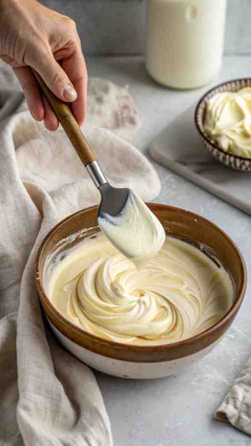 - Now, carefully fold the rest of the whipped cream in with a spatula. Don’t mix it like pancake batter—fold it gently so you don’t lose that fluffy texture.